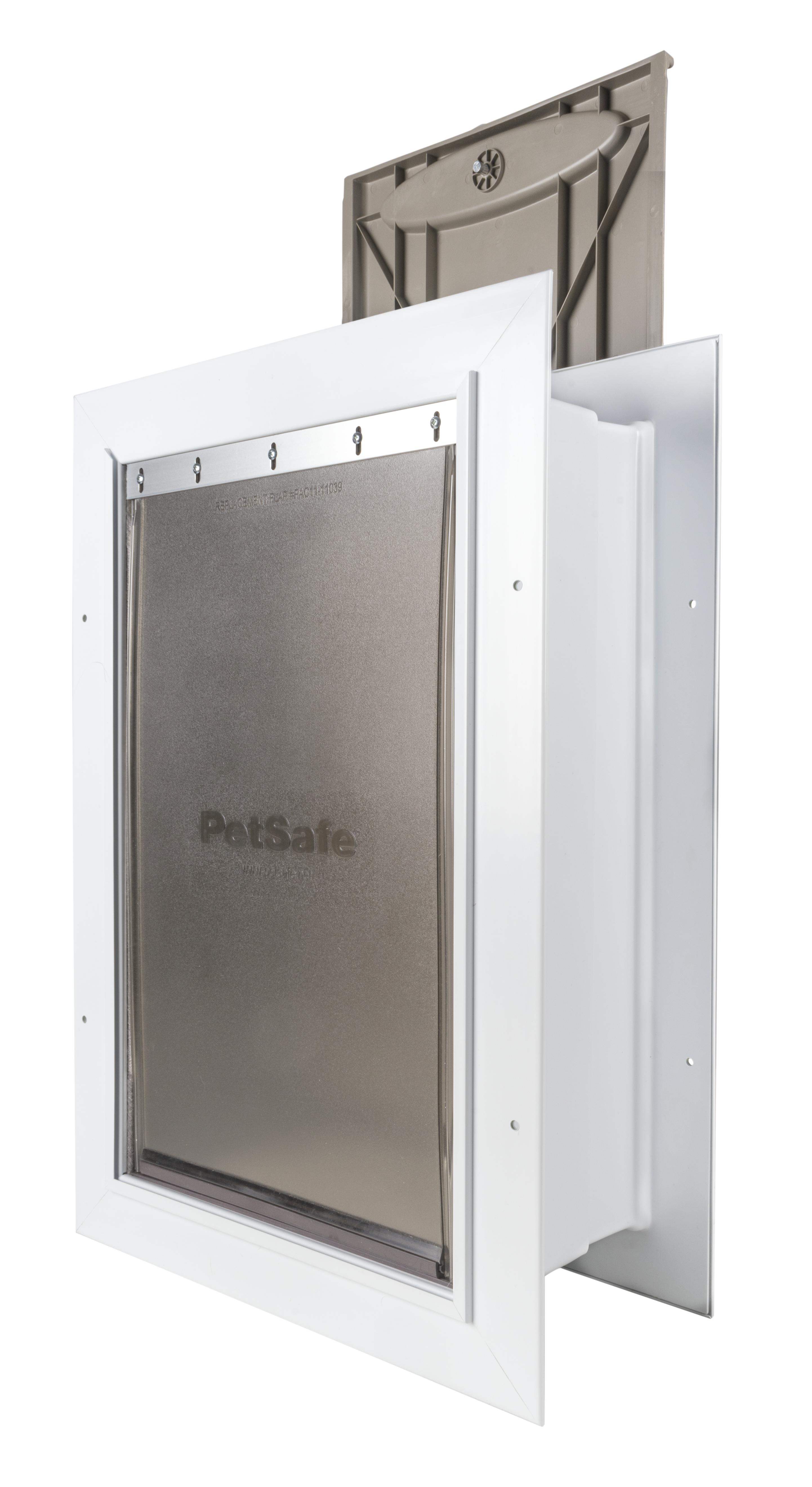 The Dual Flap design (one inside and one outside) makes for a well insulated barrier between the outdoors and your indoor room. This Dog Door can be used in a variety of wall materials including all types of siding, stucco, even brick. Installation requires only a few tools. The Wall Pet Door from PetSafe has a lifetime limited warranty.